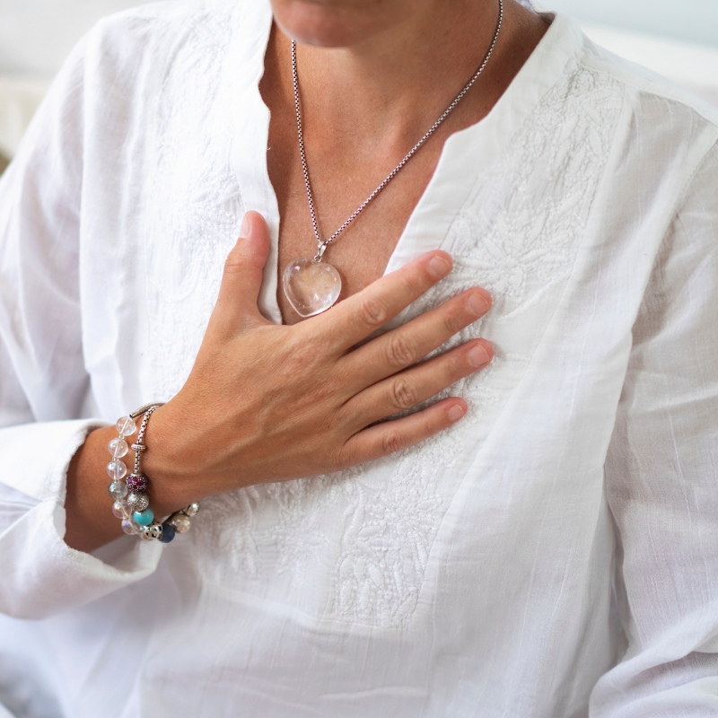 A: A gentle arc of: guided/channeled meditations and sound healing → breathwork & heart-coherence training → partner/small-group resonance → journaling and coaching for real-life integration.