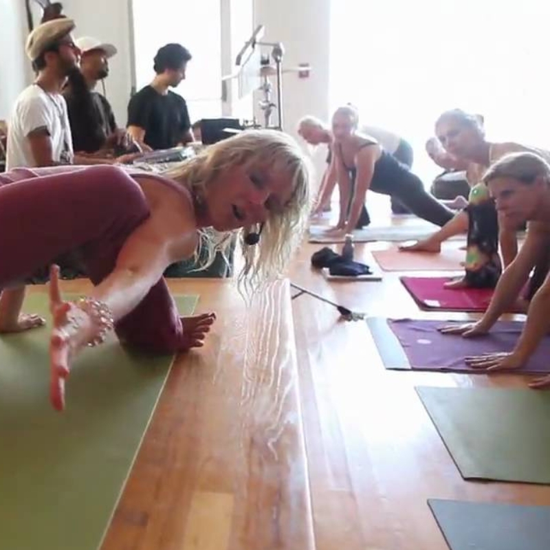 Dynamic sequences including prana flow namaskars and creative peak asanas.