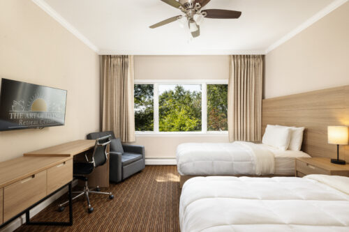 Serenity and relaxation await in our warm and inviting rooms. Guests may choose private or shared rooms based on their needs. All rooms have en-suite bathrooms. We can accommodate up to 500 guess on site.