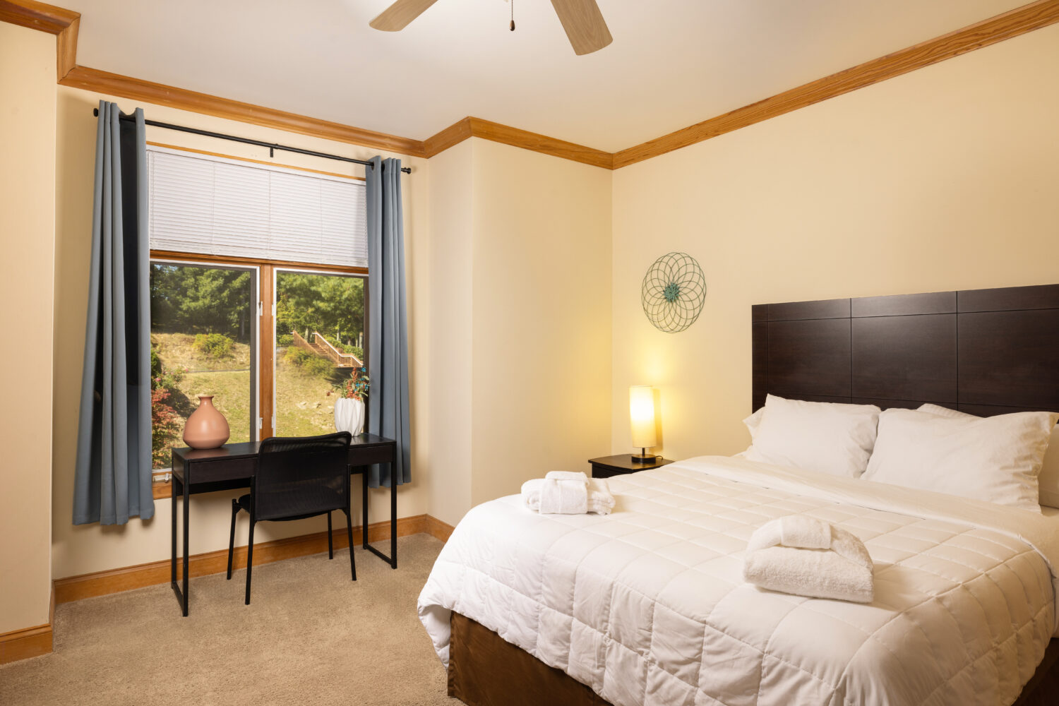 Each of these four special venues features spacious, open floor plans, plenty of natural light, and freely flowing air through the tall windows surrounding each hall. These hilltop event spaces are situated next to each other near the mountaintop, making them ideal for groups requiring adjacent retreat spaces and/or break-out rooms. Three halls are carpeted, while one has hardwood flooring, which works well for yoga and performance groups.